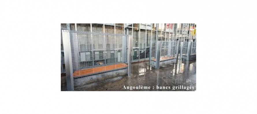 – comme à Angoulême où le maire décide « d’emprisonner » des bancs publics pour empêcher les « Sans Abris » de les utiliser, même pour dormir,